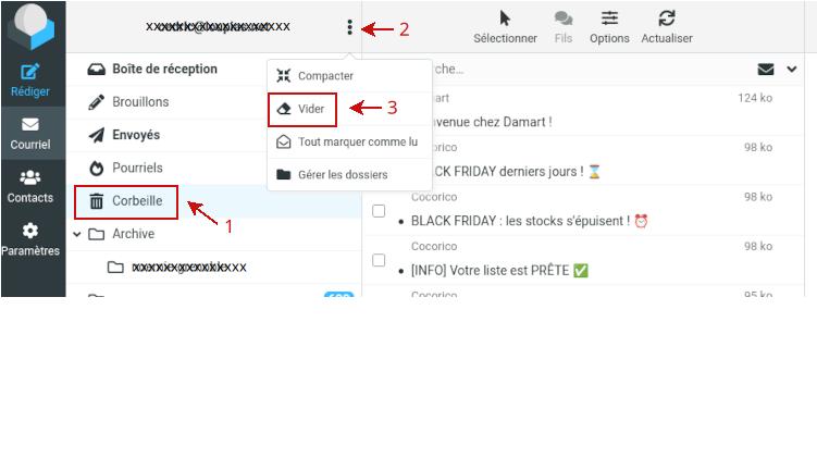 Terminer l'opération de nettoyage de votre adresse email en vidant votre dossier "Corbeille".